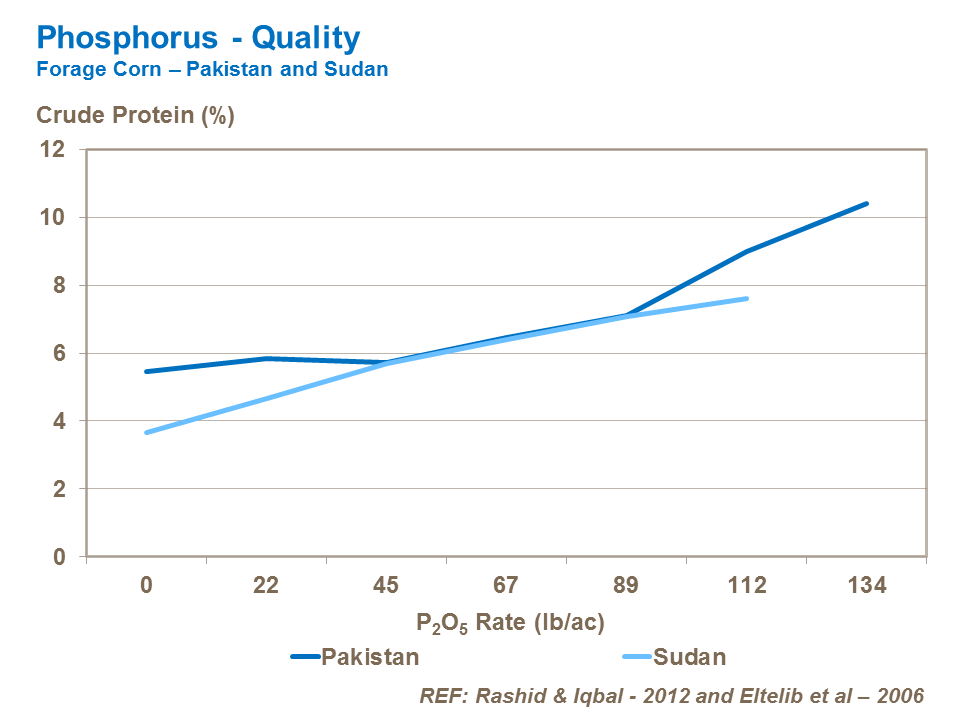 Potassium nutrition increases crude protein content of forage corn. There is evidence that boron increases the starch content of forage corn, increasing forage corn energy.