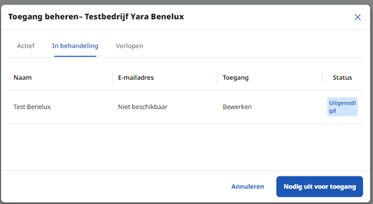 Klik van het te delen bedrijf op de drie puntjes en klik vervolgens op Toegang beheren. Klik vervolgens op Nodig uit voor toegang.