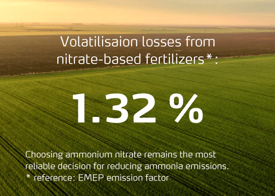 - Low volatilization losses. Nitrate-based fertilizer delivers 90% lower ammonia loss than urea on the majority of farms, established in EMEP emission factors.